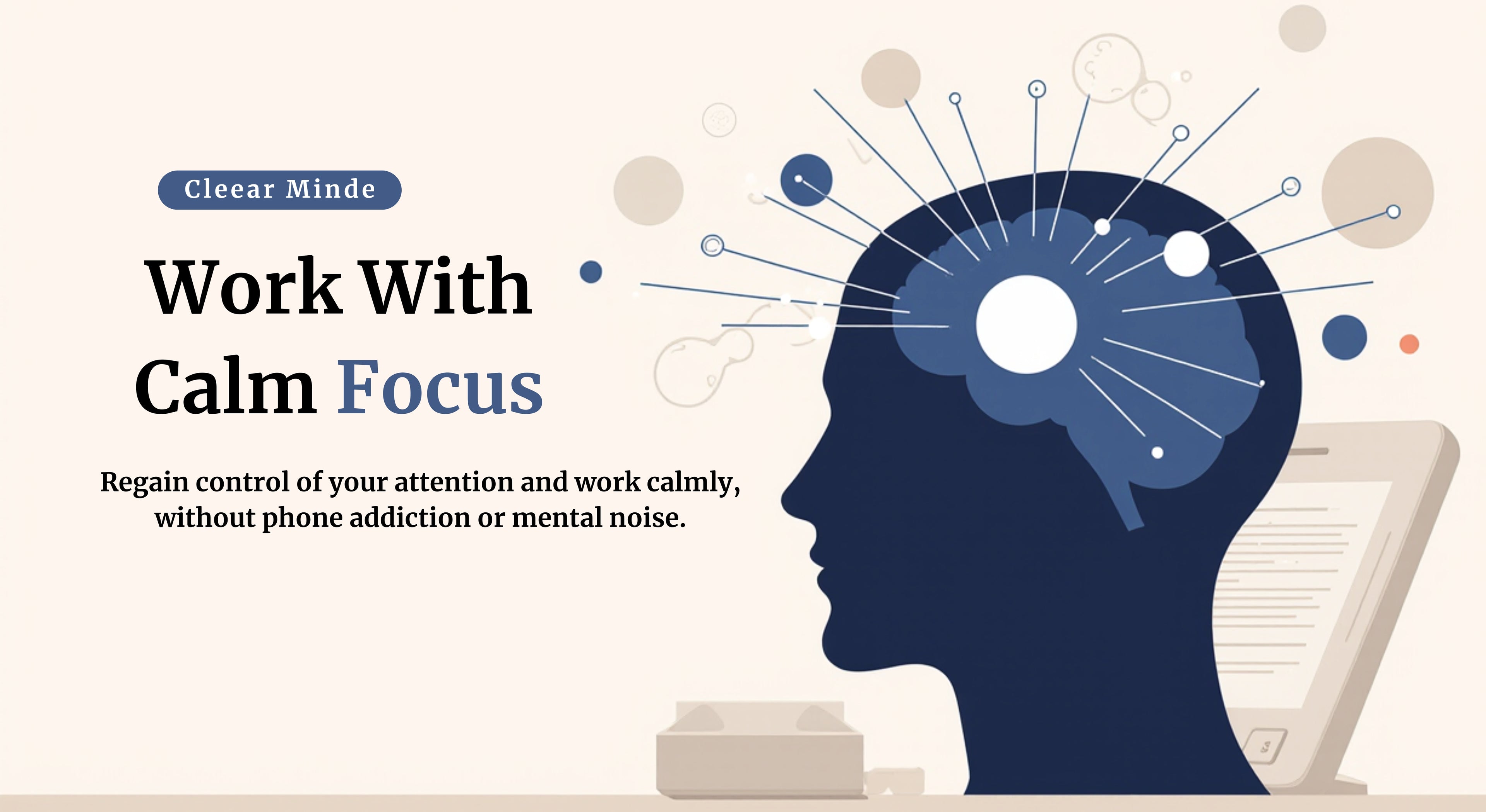 ClearMind helps you work with calm focus — without phone addiction or inner resistance.